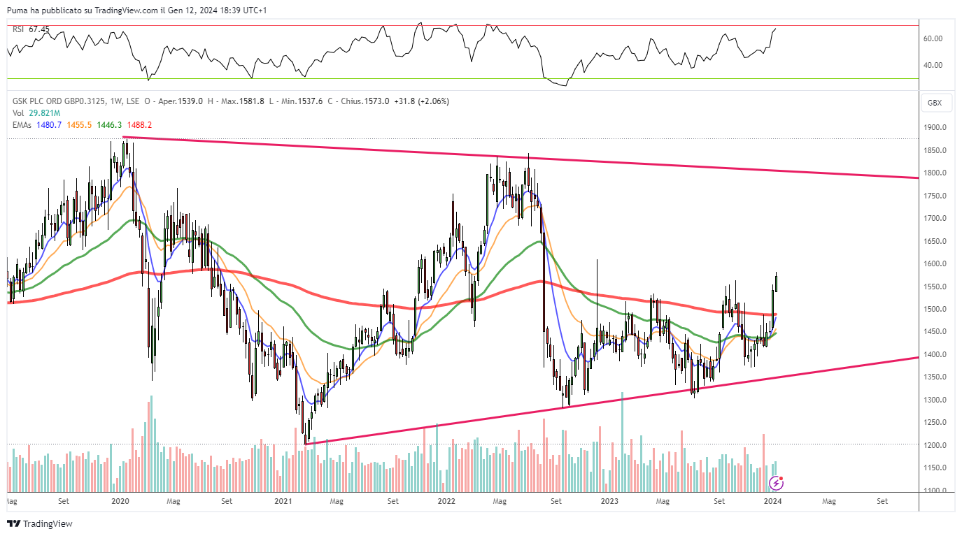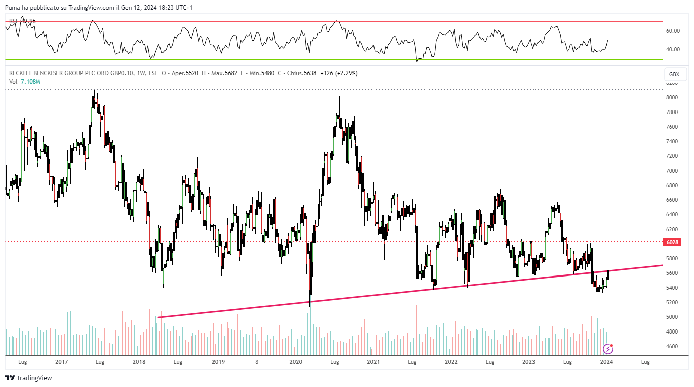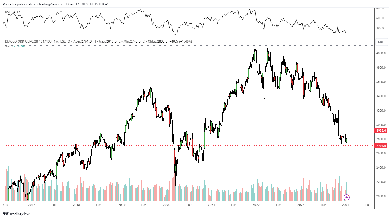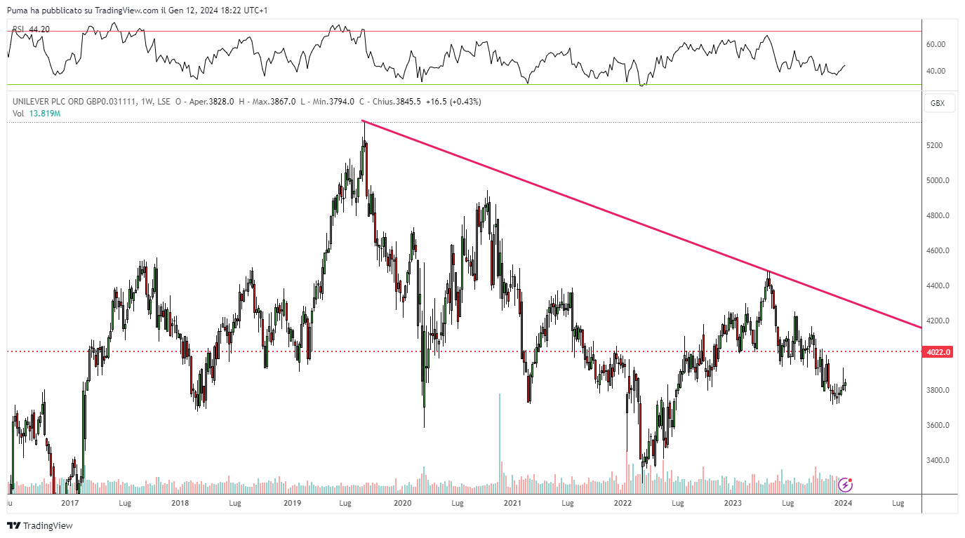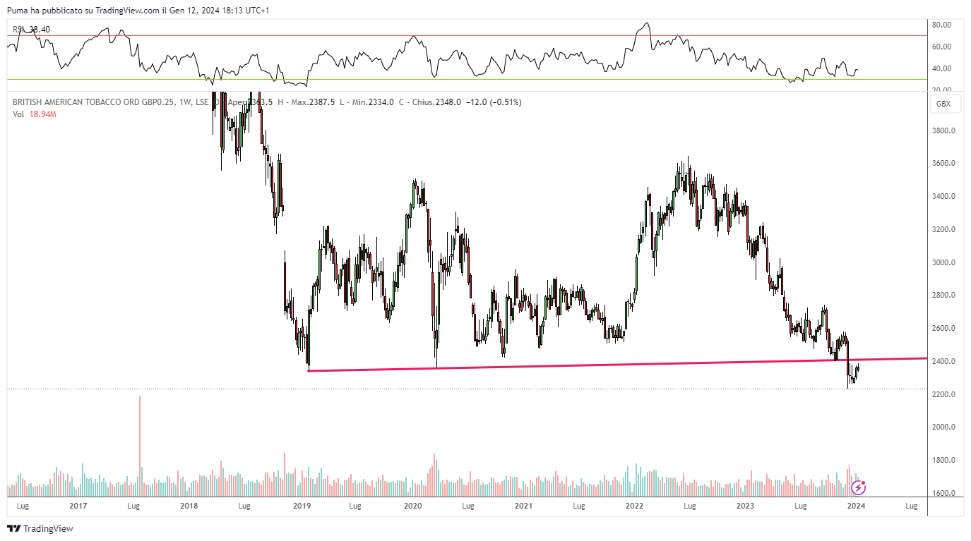 Pay attention to market timing on this title: possible entries only in the case of confirmations above 470 pence. A bearish double top, already completed, looms over the chart.