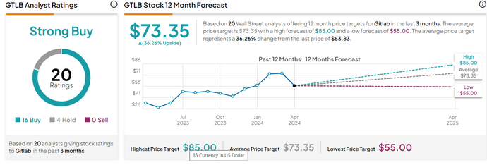 Despite the decline in recent sessions (around -7%), Wells Fargo remains optimistic about GitLab’s growth potential. With an “Overweight” rating and a price target of $70 (implying an upside of 30% from its current value), the investment prospects in the stock appear promising.