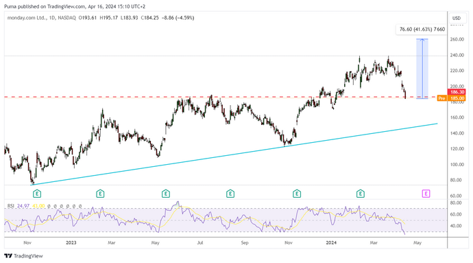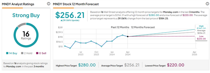 Wells Fargo believes Monday.com has strong growth potential and identifies strategies that could help the company gain significant market share in the work management industry. These strategies include expanding into the enterprise sector, increasing product offerings to drive cross-selling, using a partner network to increase visibility and develop strategic relationships, as well as possible pricing adjustments. The bank then set a price target of $260, predicting an increase in the value of the shares by 41% over the next 12 months.