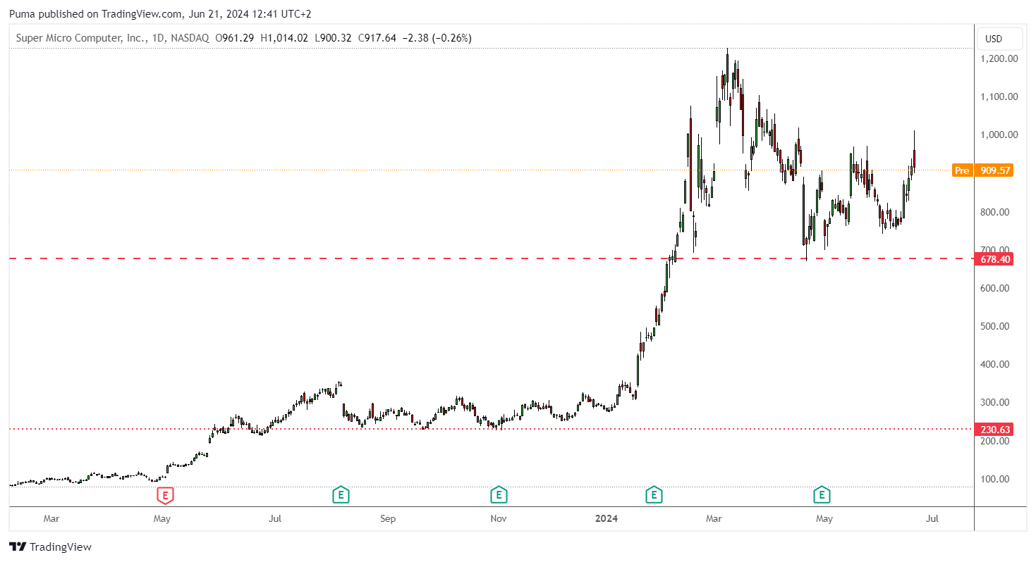 Super Micro Computer (SMCI) is among the stocks under the scrutiny of analysts, particularly appreciated for its innovative solutions in the field of servers and cloud infrastructures. In 2024, the stock has seen a significant increase thanks to the growing demand for cloud services and data centers. Supermicro shares are currently trading at 4.3 times sales, lower than the U.S. technology sector average of 7.8, suggesting the stock is undervalued.