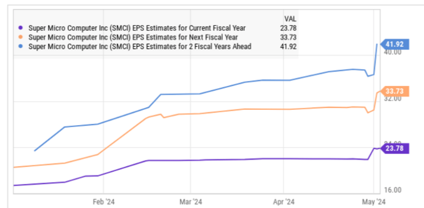 One of the main reasons Supermicro’s price to sales is attractive is the company’s exceptional revenue growth. Analysts see further growth potential in the second half of the year, with a price target of $1,070, suggesting a 17% upside. Super Micro Computer solutions are particularly in demand amid the increased adoption of AI and big data technologies, which require high-performance servers. The company reported 20% year-on-year revenue growth in H1 2024, supported by a diversified product portfolio and strategic partnerships with large technology players.
