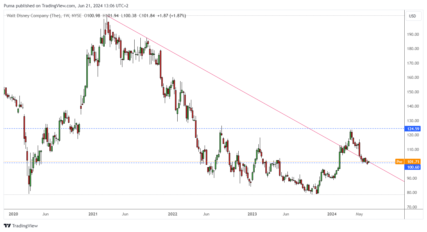 Guggenheim reiterated his buy rating on Disney shares, highlighting healthy demand for its theme parks and attractions. Additionally, the launch of new exclusive content on Disney+ continues to attract subscribers, strengthening the company’s competitive position in the streaming industry. About 75% of analysts covering the stock have a “buy” or “strong buy” rating, indicating strong confidence in Disney’s growth potential.