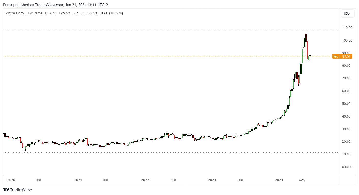 Vistra (VST), a major utility company in the United States, is another stock that analysts recommend monitoring. Vistra shares have seen a 130% increase in 2024 and are expected to rise a further 21% in the next six months.