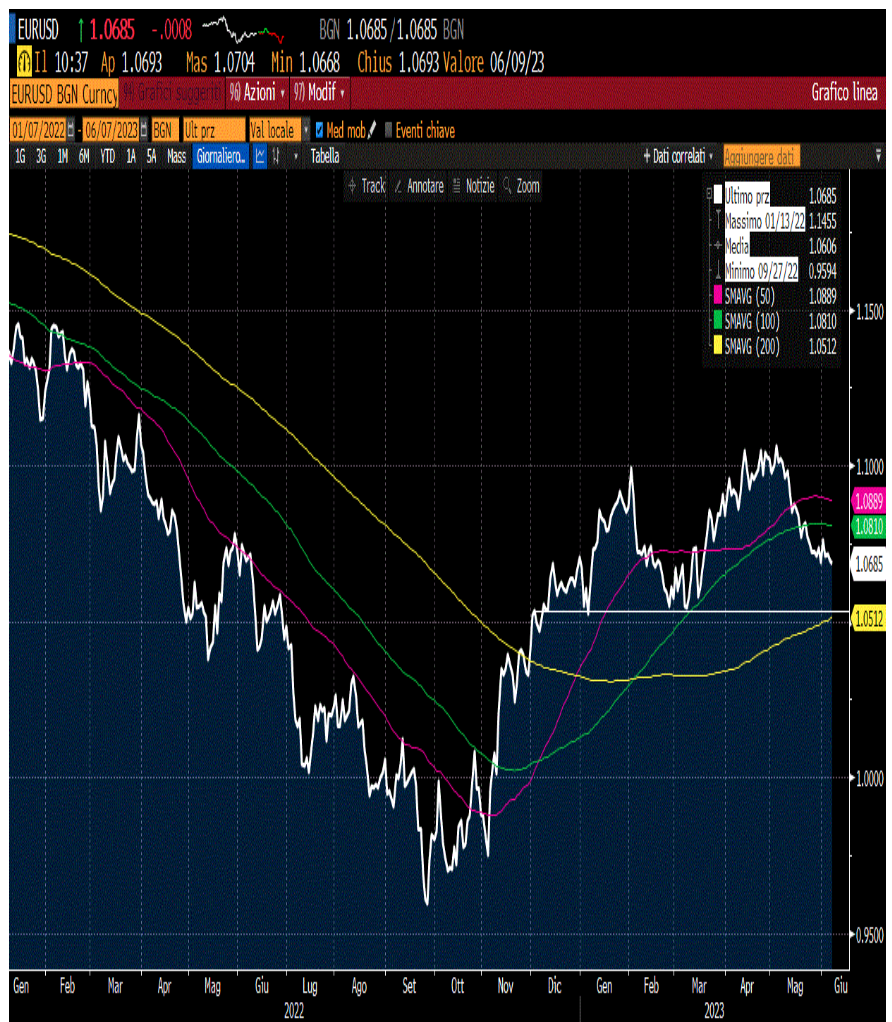 In fact, by the end of the year many analysts, in light of these different expectations for the two geographical areas, predict that the euro will return to around 1.14/1.15 against the US dollar (in December 2023 and at the beginning of January 2024). It is therefore worth continuing to invest in US government bonds, but only for very short durations, between three and six months. This is to benefit from the short-term relative strength of the dollar.