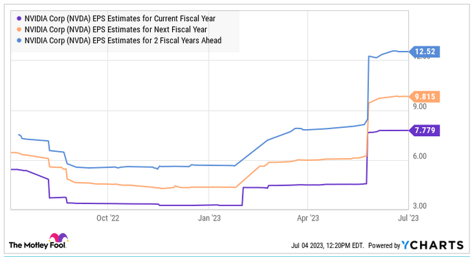 Investing in Nvidia stock could prove to be a very promising choice, especially considering the rally of nearly 200% in the first half of 2023. This increase was mainly driven by the growth in artificial intelligence, which contributed to overcoming the challenges of the personal computer market. Additionally, the outlook is attractive: Nvidia expects strong revenue and earnings growth in fiscal 2024, with revenue increase of 59% and adjusted EPS projected at $7.78, double that of $3.34 from the previous year. These factors combined could make it an attractive investment opportunity.
