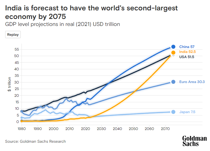 India will become the world’s second-largest economy by 2075, overtaking Japan and Germany this year. The rise of India as a world economic power is now an inevitable reality.