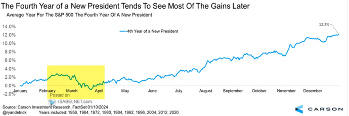 Markets have revised the rate cut prospects but if the economy turns out to be more solid than expected, this tends to reward stocks and high-yield bonds to the detriment of more defensive assets and longer-duration bonds. If you look at history, we can expect a correction in stock indices soon, given that 2024 is an election year globally: