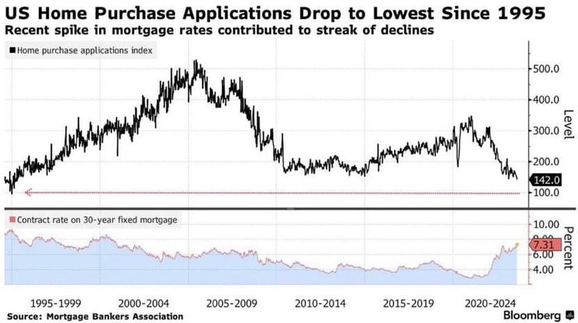 Mortgage demand in the United States has reached a 30-year low, with most buyers wishing to wait for lower interest rates before making an investment.