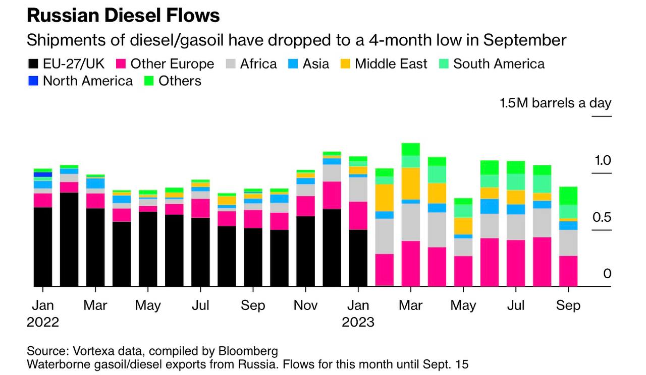 After the war erupted, however, Europe slowly halted direct transactions with Russia, looking for new commercial partners for oil and gas. By February 2023, shipments of Russian diesel to the European Union reached virtually zero.
