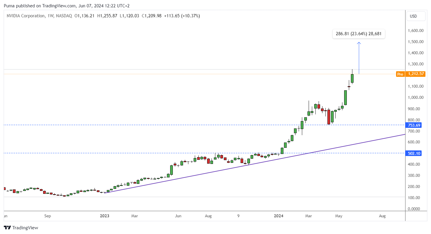 Nvidia is the undisputed leader in the AI GPU market. Recently seen an impressive performance in the stock market, with the share price having surpassed $1,200, up 210% over the past year. This success is fueled by its technology leadership and growing demand for advanced graphics processing units for AI applications. Citi analysts expect Nvidia to dominate 90-95% of the AI GPU market in 2024 and 2025, supported by an accelerated roadmap and a strong technology position spanning chips and software. With a price target of $1,500 recently assigned by BofA, Nvidia represents one of the safest bets in the semiconductor landscape. The potential upside is very respectable, equal to approximately 24% from current levels.
