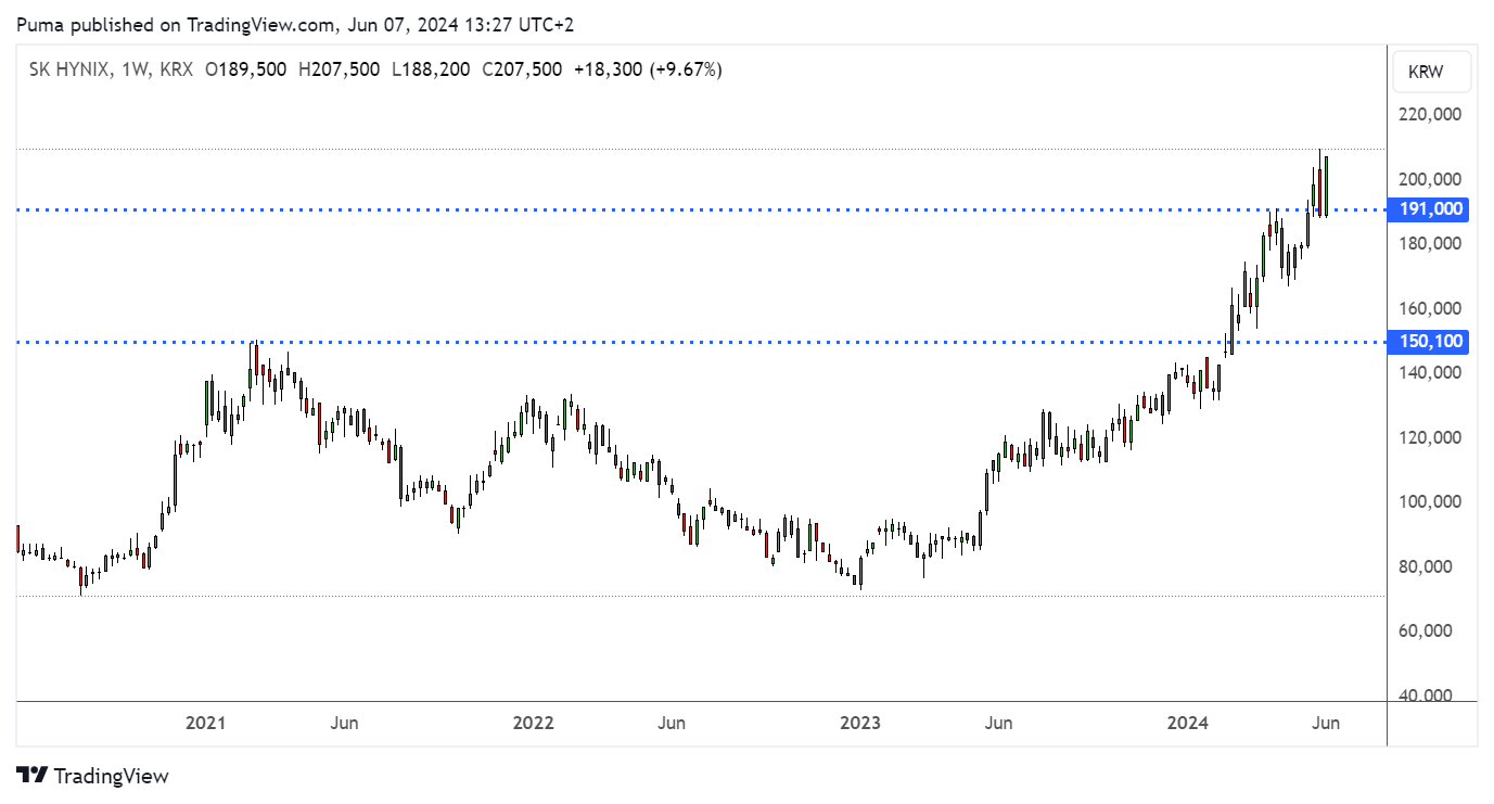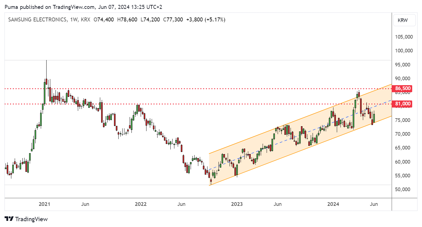 Samsung Electronics, a major player in the South Korean technology sector, tops Citi’s list. The investment bank expects a significant increase in HBM high-bandwidth memory shipments in 2024 and 2025, supported by AI investments from Cloud Solution Provider (CSP) customers. With a 23.6% weighting in the iShares MSCI South Korea ETF, Samsung Electronics represents a solid investment opportunity in the advanced memory segment.