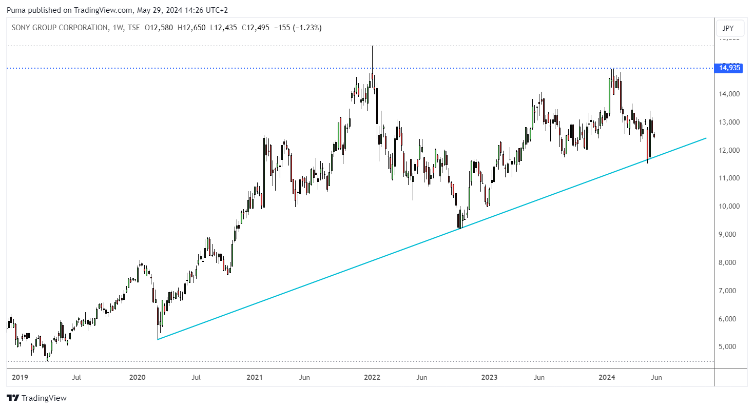 Sony, through its subsidiary Sony Semiconductor Solutions, is expanding its business into advanced semiconductors. Analysts at Macquarie Equity Research recently raised their rating for Sony Group, highlighting the successful launch of Helldivers II as a positive factor for the games division. Macquarie has calculated a target price of $108 (or 16,868 JPY) approximately 35% away from current values. According to Citi, the stock can rise by 30.1%.