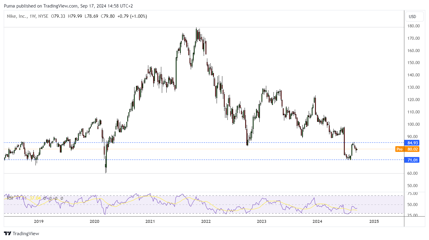 Nike shares rose as much as 87% after the latest Fed rate cut. The well-known sportswear brand is coming off a delicate phase, characterized by a decline in sales and demand that has been reflected in the stock market performance with a decline of more than 25% since the beginning of the year.
