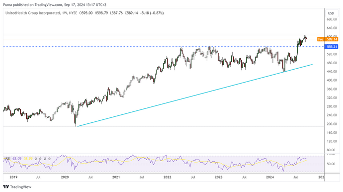 Although the shares are trading near new records at $607, earnings per share have grown steadily in recent years, with an average dividend increase of 22% per year.