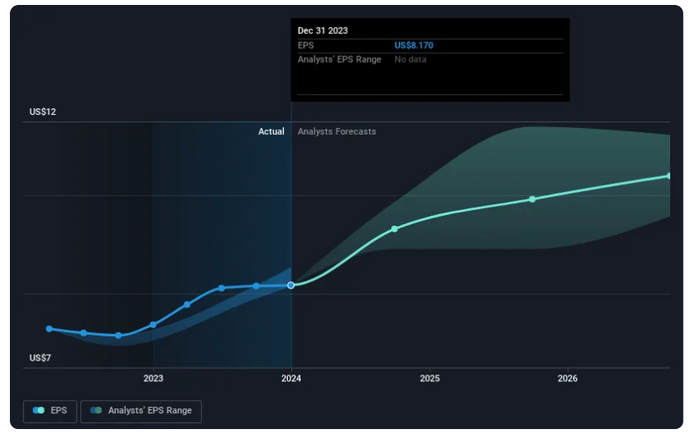 Raymond James Financial has shown notable growth in recent years, with a 25% compound increase in earnings per share (EPS) over the past three years. The company managed to maintain stable EBIT margins while growing revenue by 8.4% to $12 billion. However, the recent trend of slowing EPS could affect overall profitability, especially if financing costs remain elevated for longer.