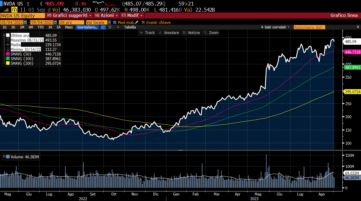 But this price-earnings multiple, although very high compared to the market in general, is in line with that of the shares of Amazon or of Adobe Inc. and Microsoft Corp., even if these estimates by NVIDIA should prove to be even more cautious compared to the actual numbers that will actually be reached in 12 months. In short, this 2023 euphoria belongs not only to NVIDIA but to the entire world of AI-related companies.