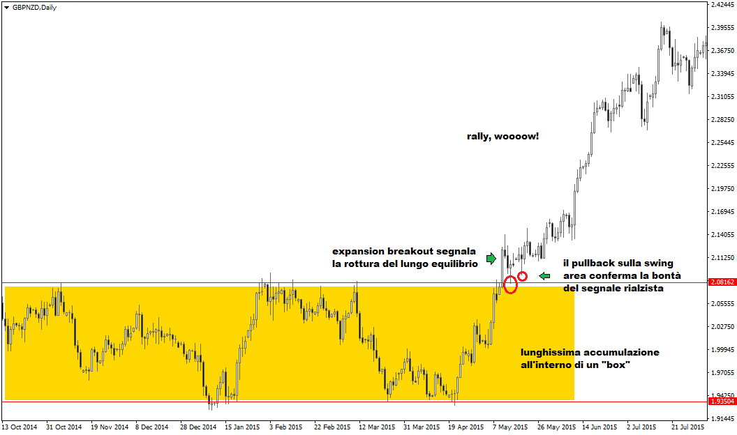 Understanding, for example, when exceptional rallies can really start is not easy, but it is possible. We recommend taking a look at the long consolidation phases on FX (or other tradable instruments from a trading perspective, as long as they are liquid enough) and wait for the breakout explosive of the high or low end of the range. At that point entry will be a matter of “style”: immediate entry or waiting for a pullback.