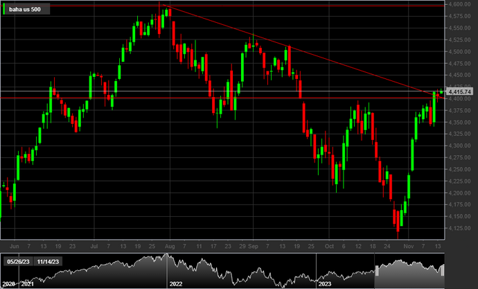 For the S&P 500 index, the highs of the year are placed on the threshold of 4,600 points, a value close to which the index has started a correction process. However, it seems that the trend of successive lower highs has been interrupted in recent days, with the break of the 4,400-point level.