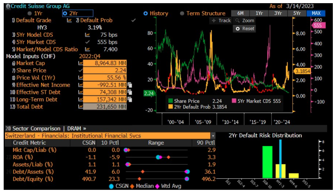 The bank’s shares, as well as the CS business itself, have been under enormous pressure for many years now and the persistent downtrend actually started as early as 2007. The current downtrends have worsened and mainly triggered by the uncertainty surrounding the US banking sector and systemic liquidity. It is worth mentioning, however, that the CS crisis has been going on for many years and the company’s financial structure seems currently immune to liquidity risks. However, investors’ attention is focused on another aspect, namely the Credit Default Swap (CDS), which yesterday hit new historical highs.