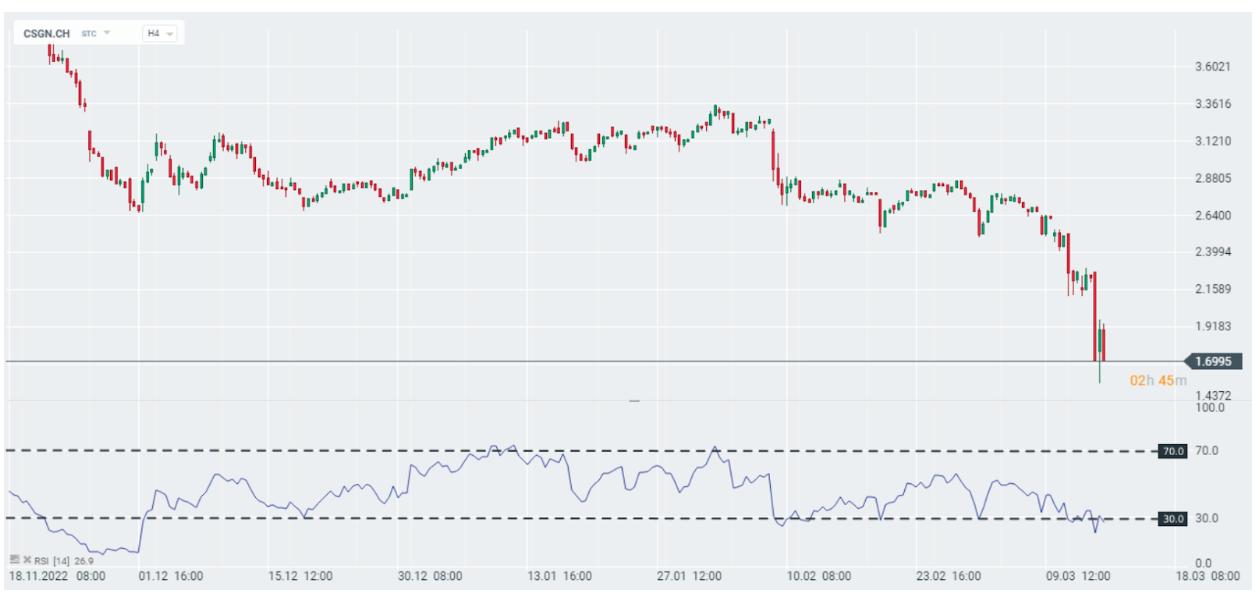 Yesterday morning saw a huge sell-off in the Swiss bank’s shares, with the scale reaching 30%. However, that changed abruptly around noon as shares of the company rebounded and trimmed losses by nearly 15%. At the end of the session, the Financial Times initiated further downward momentum, after reporting that CS had approached the SNB for the central bank to publicly assure the bank of its potential support in times of uncertainty.