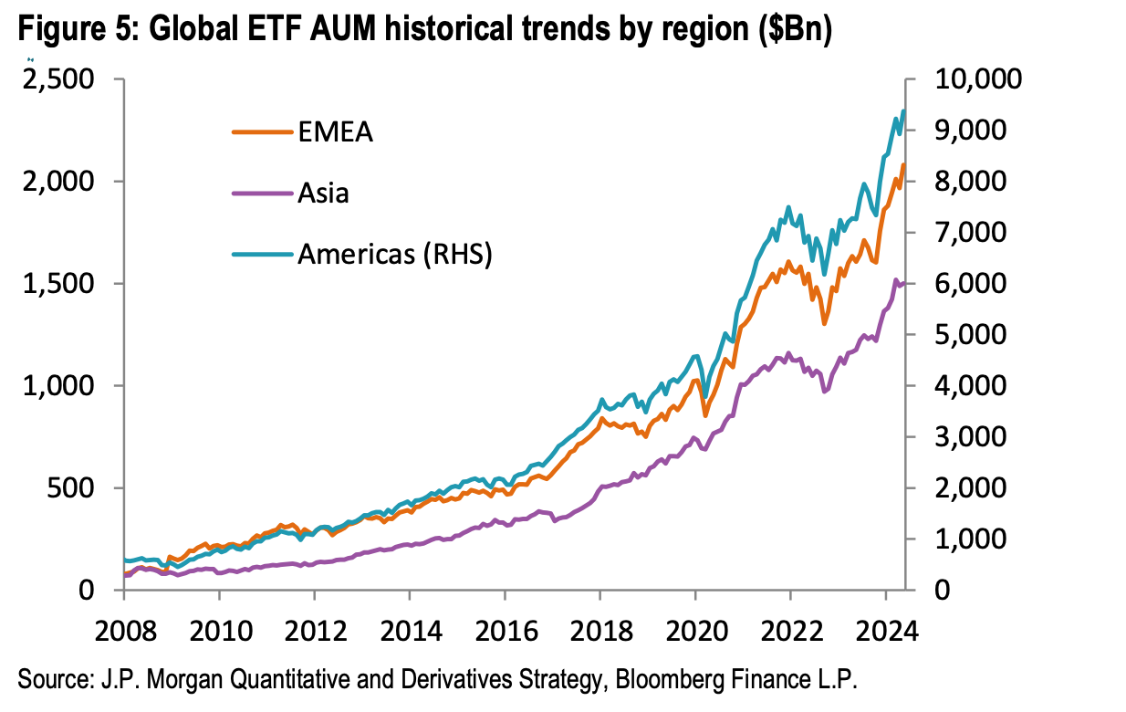 Assets in the global ETF industry have grown by approximately $3 trillion since the last report, thanks to continued inflows and rising markets. That’s more than the total market capitalization of the FTSE 100, or about one Nvidia these days.