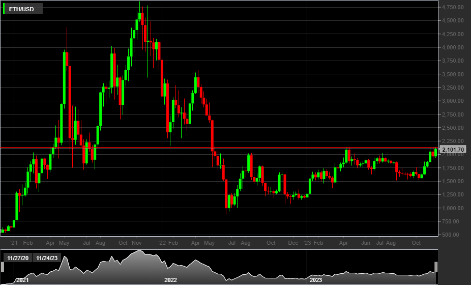 By now, ETH is in the spotlight, with the price of ETH/USD sitting at the crucial resistance of the last two years: the value of $2,140. This represents, not surprisingly, the technical obstacle immediately following the value of $2,000, considered by many as the true point of control (POC) for the price action of ETH. Despite this, the real reference point is the first level and its break could trigger a sharp increase in volatility, resulting in significant price movements.