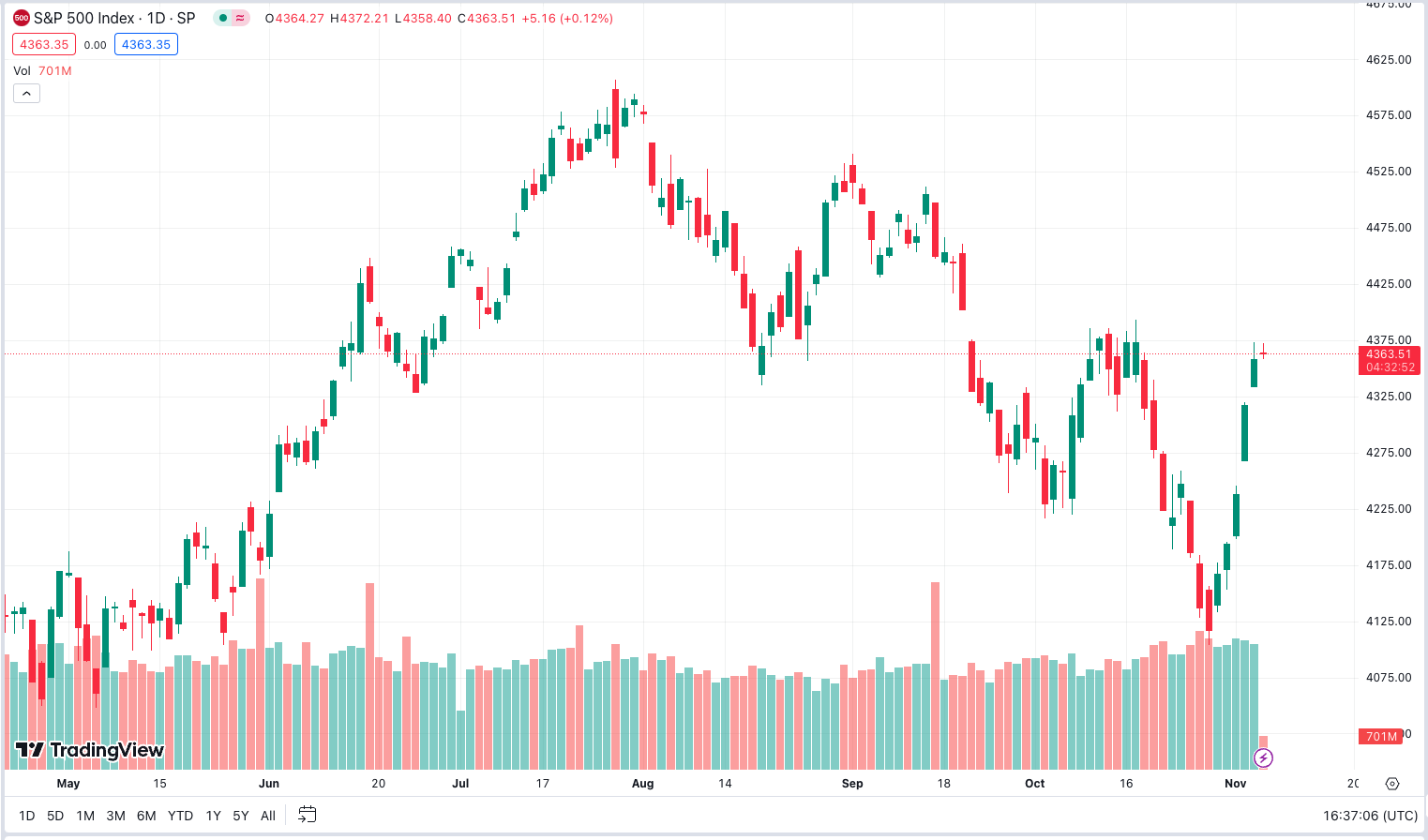 The S&P 500 has grown 14.21% Year-to-Date, a much better performance than last year when it dropped over 1,200 points from its peak. In the second half of 2023, however, the S&P 500 has been slowly declining, with temporary rallies followed by longer contractions.